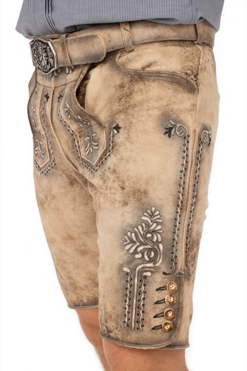What truly distinguishes this piece is the refined embroidery adorning the front and sides, featuring traditional floral patterns and classic Bavarian scrollwork. These intricate details lend it a sophisticated yet rugged charm. The included leather belt, complete with an antique silver buckle, adds the finishing touch to this iconic garment. Pair it with a crisp shirt and traditional Bavarian footwear to fully embrace the spirit of Oktoberfest.