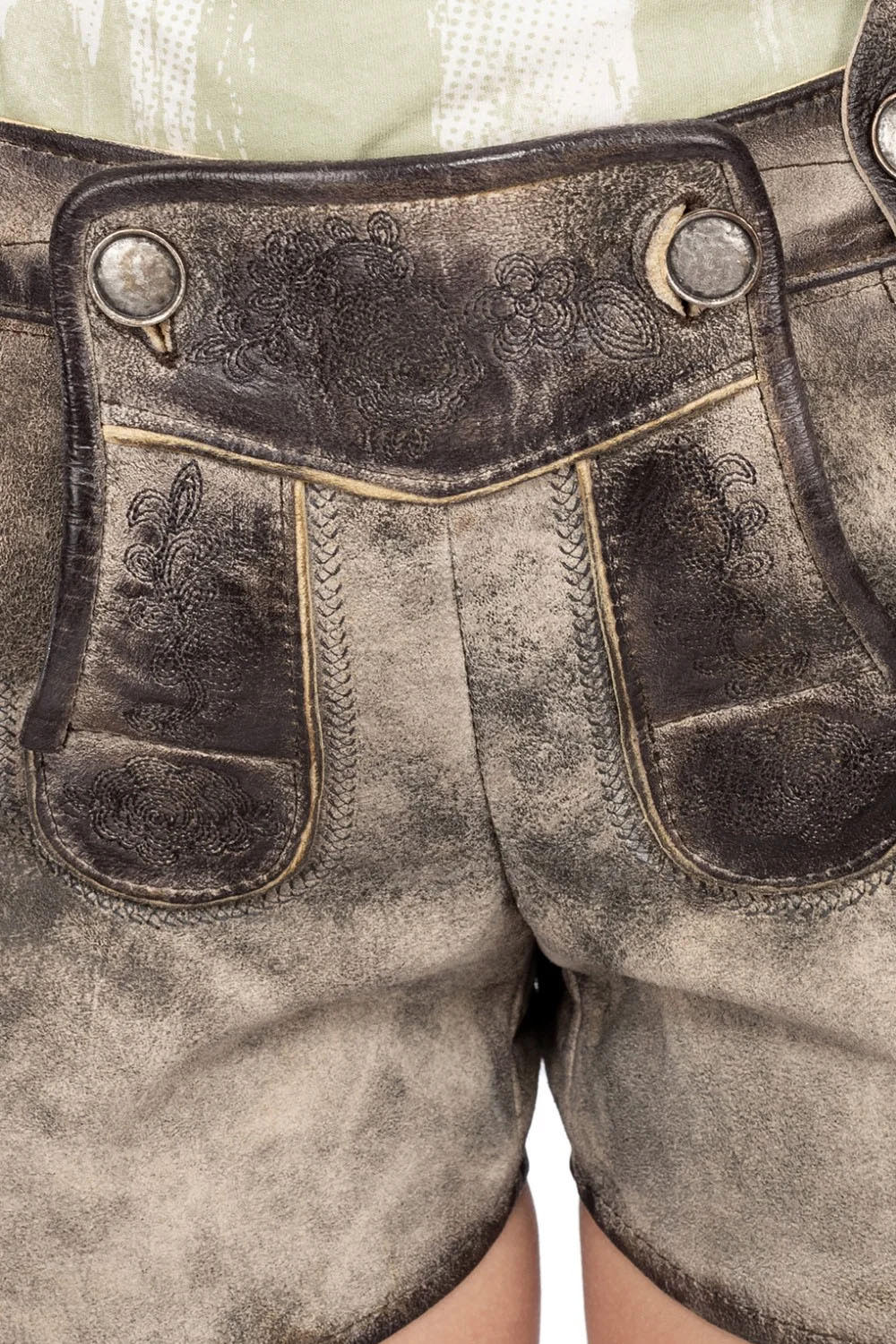Step into the spotlight with our Beyoncé Lederhosen, a fierce and fabulous Dirndl alternative for women who love tradition with a twist. Crafted from 100% premium goat suede leather, these ladies’ Lederhosen shorts blend classic Bavarian elegance with a bold, diva-inspired vibe. Rich brown tones and hand-embroidered floral designs bring authentic traditional German women’s clothing to life—only sassier.