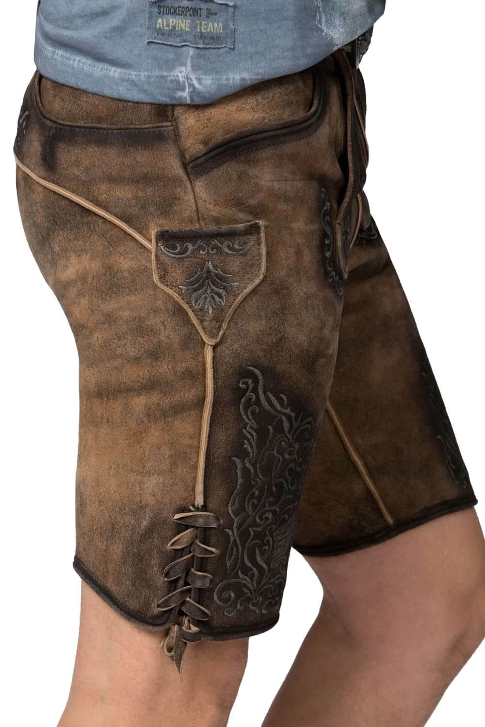 Designed with Oktoberfest and year-round cultural events in mind, these leather shorts fuse time-honored tradition with modern comfort. The standout embroidery, featuring flowing vines and detailed foliage, creates a dramatic contrast against the rich suede body. Elegant side and front panel detailing add another layer of sophistication, setting these men’s Oktoberfest Lederhosen apart from ordinary attire.