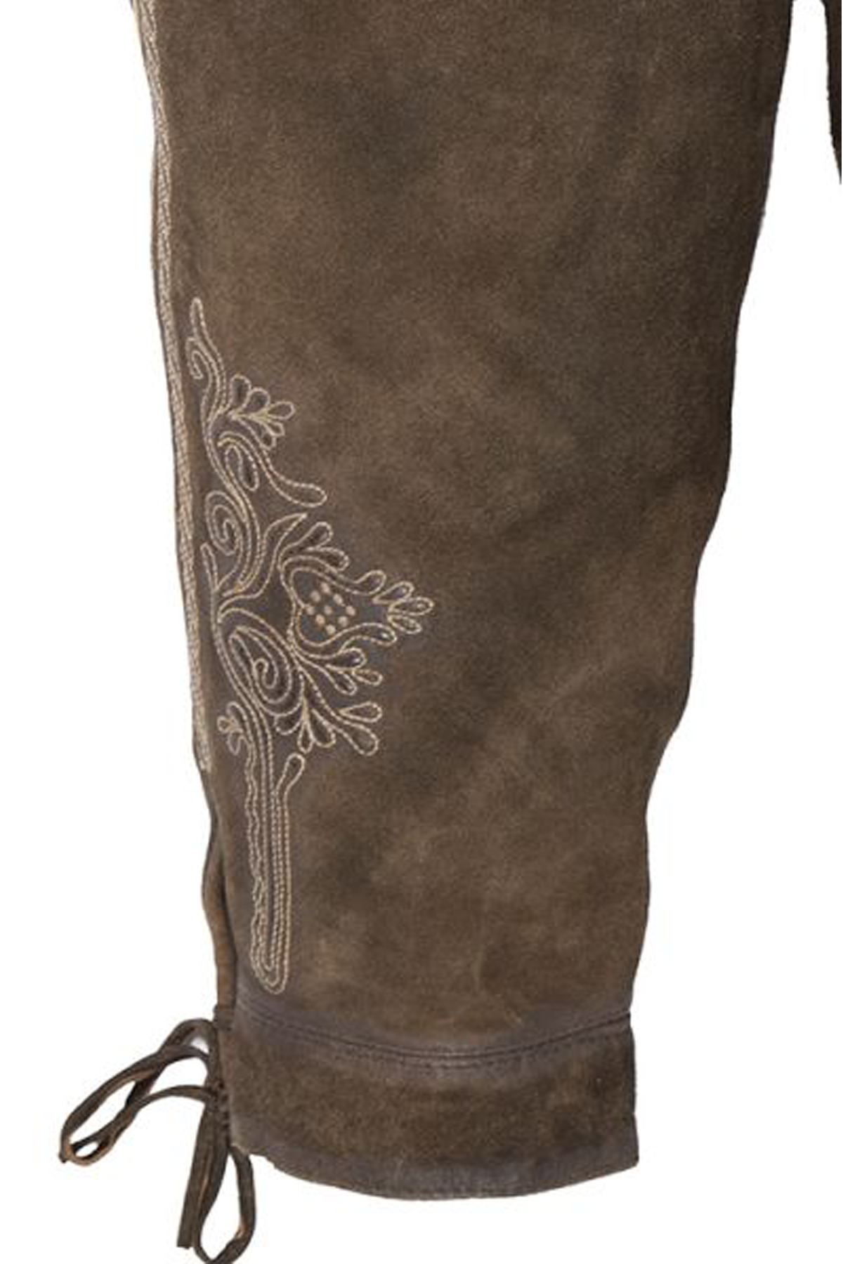 Step into classic Bavarian tradition with the Olaf Bundhosen Authentic Brown by Alpen Lederhosen, crafted from premium goat suede leather. These German Lederhosen offer a perfect balance of comfort, durability, and style, thanks to the suede’s breathable texture and soft finish. Featuring a rich earthy brown tone and intricate embroidery with alpine and edelweiss motifs, these Bavarian Kniebund pants embody true Alpine heritage and craftsmanship.