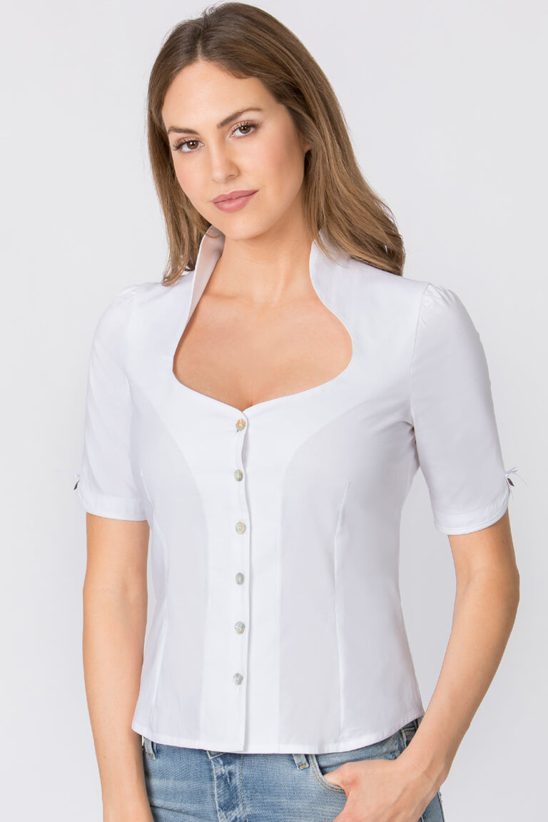The Pahde Oktoberfest Shirt is a perfect blend of tradition and modern elegance, making it an ideal choice for any Oktoberfest celebration or traditional Bavarian event. This White Shirt features a flattering and feminine design with a high neckline and a scoop chest cut, allowing you to embrace both modesty and charm. The short sleeves with delicate bow details at the cuffs add a playful yet sophisticated touch, making this Dirndl Shirt a standout piece for festive occasions.