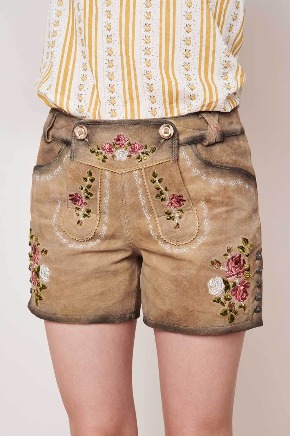 Explore more pieces like this on our Women’s Bavarian Shorts Collection, where timeless style meets authentic craftsmanship. This short features 100% premium material for lasting comfort, strong reversible stitching with no polyester, and embossed embroidery for a distinctive touch. The high-quality leather adapts comfortably to your figure with its adjustable back waist. Available in a light brown colour with delicate pink and white embroidery for an elegant finish.